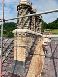 These chimneys were taken down into the roof void, then re-built using original bricks combined with lime mortar