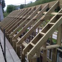 A new timber built, braced and collared roof, with walls all traditionally cut and pitched. There was no need for expensive, spindly pre-fabricated parts