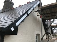 As part of another re-roofing job, I made shaped and profiled painted barge boards using iroko hardwood